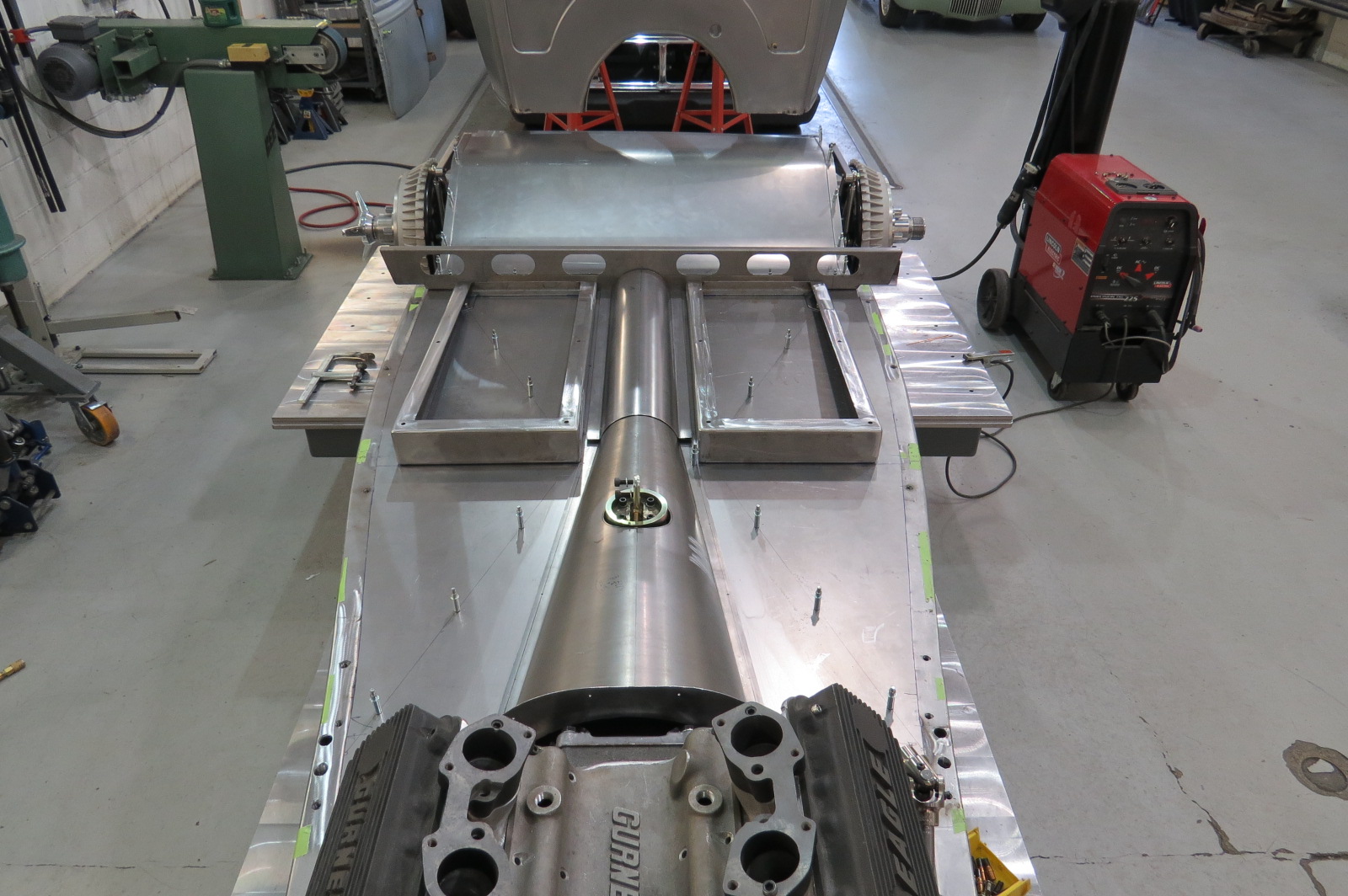 - New floor panels and tunnel showing body crossmember and seat mounts